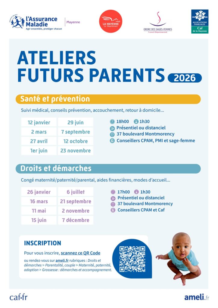 La Caisse Primaire d’Assurance Maladie de la Mayenne organise des ateliers pour les futurs parents.